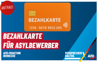 Die AfD-Fraktion Herdecke stellt in der Sitzung des Rates am 18.12.2025 den Änderungsantrag „Bezahlkarte für Asylbewerber“. Der Änderungsantrag bezieht sich auf den Tagesordnungspunkt 25 mit dem Beschlussvorschlag der Stadtverwaltung, vorerst auf die Einführung einer Bezahlkarte für Asylbewerber zu verzichten. Der Antragstext lautet wie folgt: „Der Rat der Stadt Herdecke beschließt, die Bezahlkarte für Asylbewerber gemäß [...]